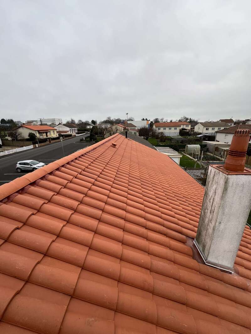 Nettoyage de toiture réalisé sur notre maison à Cholet. Le toit était recouvert de mousses et autres. Le résultat a été long un peu près 4 mois mais nous sommes satisfait